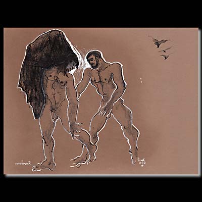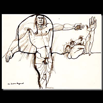 It wasn't until he started doing male nudes that he felt he had something to say as an artist. He had always had a talent for drawing. H was forced to admit the fact that he was a gay man during the Second World War, and had to accept that he was attracted to men. He was an openly gay artist who specialized in male nudes. He accepted himself, and he started drawing his passion, the male figure. Male nudity became his theme and main subject. When drawing (or painting) a naked man, he finally felt he was fulfilling his purpose as an artist. That gave him a new sense of freedom and satisfaction.