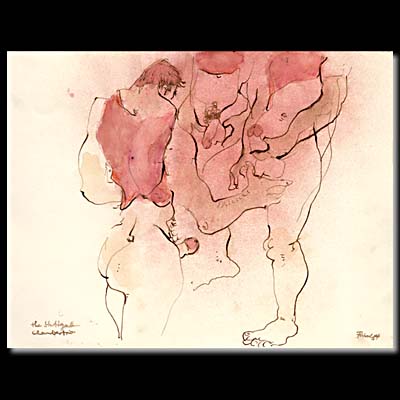 He was often asked, "Are your nude models straight or gay?" His answer was “both gay and straight men model nude for me”. He found models everywhere, on the beach, in the YMCA locker room, in clubs and bars and at bus stops. When he saw a potential model, he didn't ask himself, “Is he a gay man?” or “Is he a straight man?”. He ask himself, “will he look great naked?” He didn't paint a naked gay man or a naked straight man, he painted a naked man. He didn’t paint naked homosexual men or naked heterosexual men, he painted naked men. What we present with his web gallery is not a gay men gallery, or a straight men gallery, it's a gallery of nude men. Every work in his web store is available to buy, to add to your collection of nude male art.